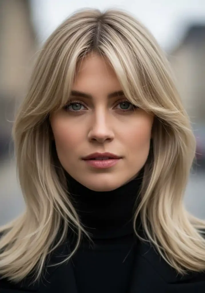 Ash blonde hair with curtain bangs creates a face-framing combination of genuinely distinctive and cool beauty that is specifically and beautifully different from the warmer, more conventionally pretty effect of golden or honey blonde curtain bangs, because the cool, muted quality of the ash tones creates a face-framing effect of quiet, sophisticated elegance rather than warm, obvious prettiness. The cool ash tones in the curtain bang sections frame the face with a quality of muted, slightly smoky lightness that creates a beautifully refined halo effect around the features that draws attention to the eyes in a cool, understated way rather than the more warmly obvious brightening effect of warmer blonde bangs. The effect is deeply, subtly beautiful.