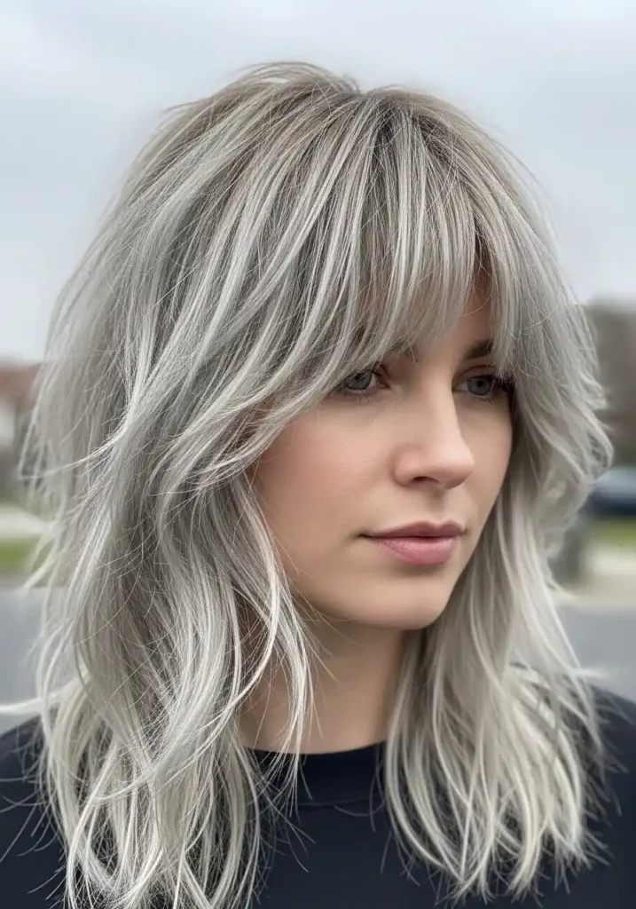 Ash blonde hair with silver and platinum highlights creates one of the most genuinely avant-garde and beautifully sophisticated color combinations available within the cool blonde family, adding a metallic, luminous dimension to the muted, atmospheric quality of the ash blonde base that gives the overall color an almost precious-metal quality of cool, reflective beauty. The silver pieces appear within the ash blonde base with a slightly brighter, more reflective quality that creates tonal contrast without introducing any warmth, maintaining the complete cool aesthetic coherence of the overall color while adding the specific kind of luminous, metallic interest that prevents the ash blonde from appearing tonally flat or lacking in visual complexity and dimensional richness. The silver adds sophisticated sparkle.