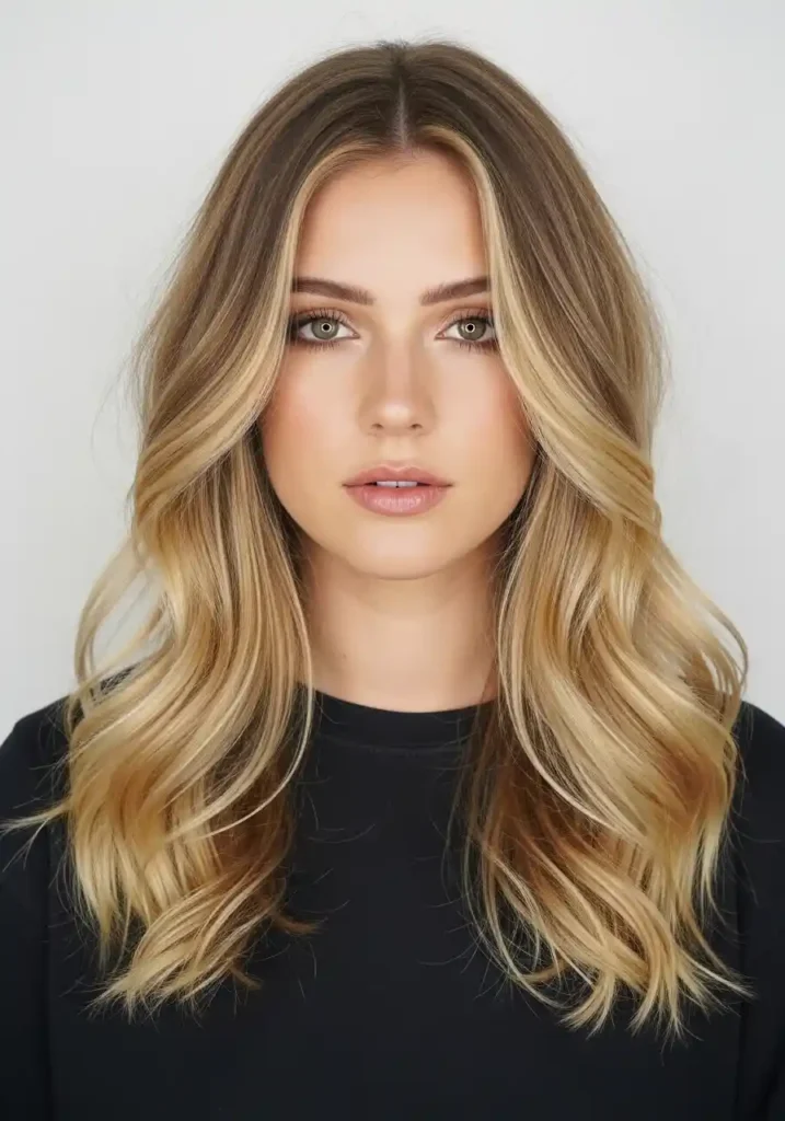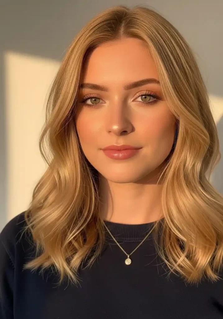 The warm golden tone specifically is the most broadly flattering blonde temperature because the amber-gold quality of true golden blonde complements the widest range of skin tones — creating warmth and radiance for warm complexions, adding brightness and dimension to neutral complexions, and providing the specific contrast that makes cool complexions appear more luminously warm. Maintain with a warm-toned depositing conditioner used twice weekly and a professional warm golden gloss every eight to ten weeks that refreshes the golden warmth and prevents the balayage from fading toward a cooler, less luminous expression.