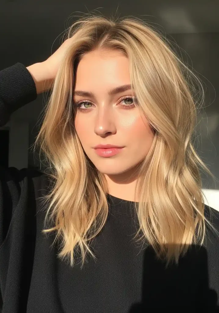 The sandy tone’s muted, slightly dusty warmth is specifically what creates this effortless quality — it is warm enough to glow naturally in golden light, pale enough to create genuine blonde impact, and muted enough to avoid the obvious salon-fresh brightness that more saturated blondes carry. Sandy blonde is the easiest blonde to maintain of any shade because its natural, understated quality means root growth and gradual fading both appear as extensions of the organic look rather than as maintenance problems requiring urgent correction. A sandy-tinted balayage touch-up every five to six months is typically sufficient.