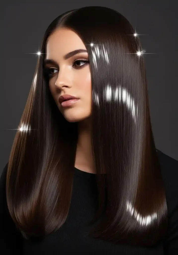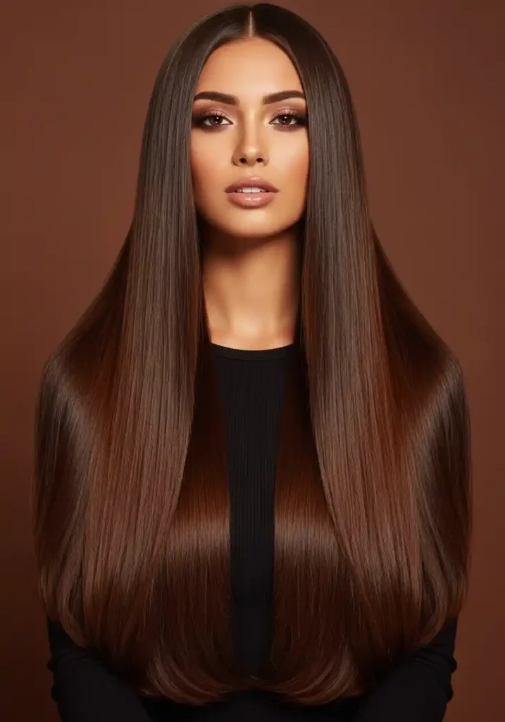 18. Rich Brown Long Hair with Glossy Straight Styling