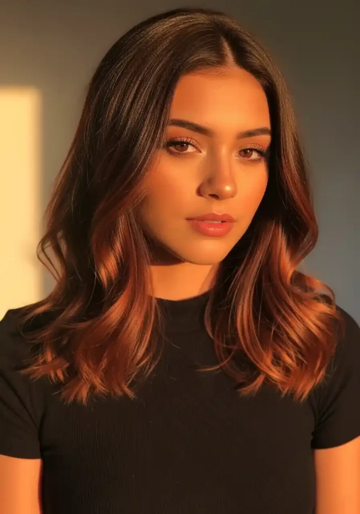 Cinnamon highlights within rich brown hair occupy the most specifically warm and spice-toned position in the highlight spectrum — not the metallic warmth of gold, not the sweet warmth of honey, but the deep, warm, reddish-amber warmth of actual cinnamon, which carries a specific richness and complexity that makes brown hair with cinnamon highlights look genuinely luxurious rather than simply highlighted. The spice quality of the cinnamon tone means it integrates naturally with brown hair’s existing warmth, appearing as an intensification of the brown base’s inherent warmth rather than a foreign lighter element added to it.