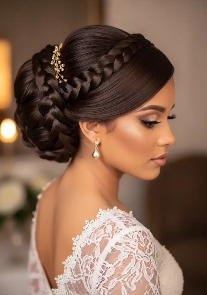 A rich brown updo with glossy braided accents is the special occasion hairstyle that allows rich brown hair’s two most beautiful qualities — its extraordinary dimensional depth and its glass-like gloss finish — to be appreciated simultaneously and in the most intimate, detailed way. The updo structure holds the hair in place while the braided sections reveal the rich brown color’s dimensional complexity — individual strands of slightly different tones within the rich brown color visible in the woven pattern, creating a color texture within the braid that is genuinely beautiful and genuinely detailed.