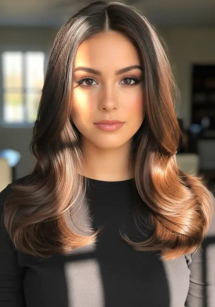 The rich warm brown blowout is the hairstyle that most directly showcases the extraordinary luminosity that a glossy finish makes possible — because a blowout creates a smooth, directionally uniform hair surface that catches and reflects light in long, continuous sweeps across the entire length of the hair rather than in the scattered, multi-directional way of textured or wavy hair. On rich warm brown hair, this continuous reflective surface creates light patterns of extraordinary beauty — each movement of the head creates a new cascade of warm brown reflections that makes the hair look almost cinematically beautiful.