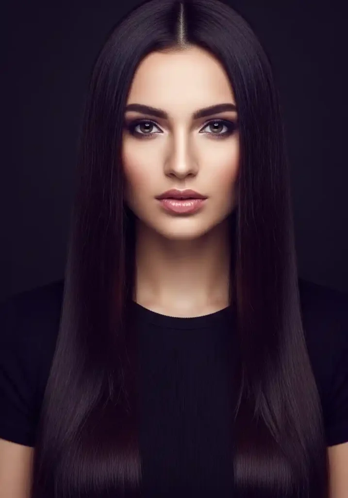 The straight styling required to create this result without damaging the rich brown color demands a specific approach — a high-quality heat protectant containing both thermal protection and shine-enhancing ingredients applied before any heat contact, a professional-quality flat iron with ceramic or tourmaline plates that distribute heat evenly without hot spots, and a technique that moves the flat iron smoothly through each section without excessive tension or repeated passes over the same section. Each correctly straightened section should be glossy and smooth immediately after the flat iron passes through, indicating that the cuticle has been laid flat without being cooked. Finish with argan oil and a silk pillowcase to maintain overnight.