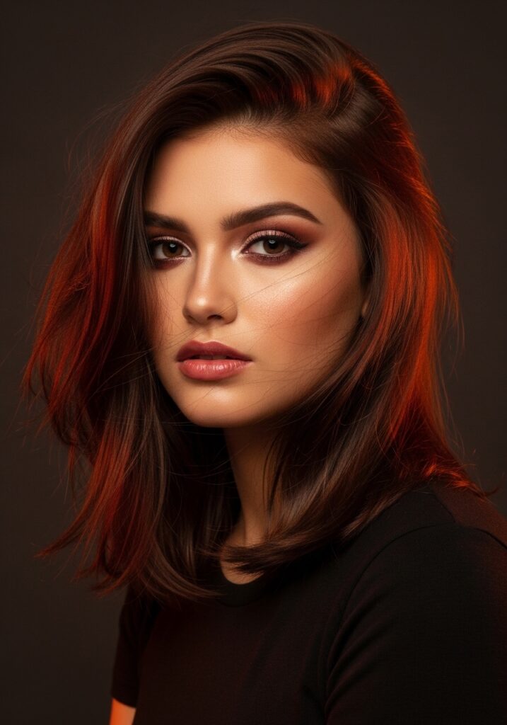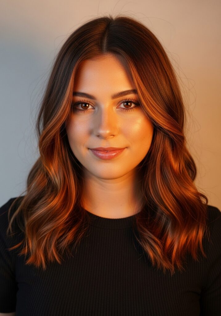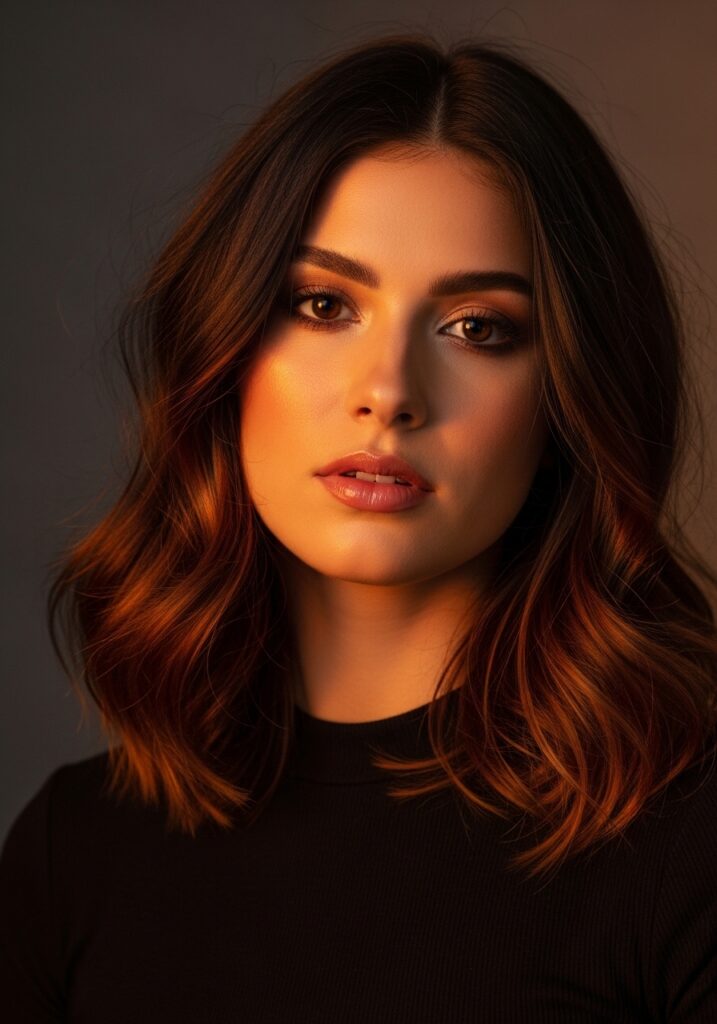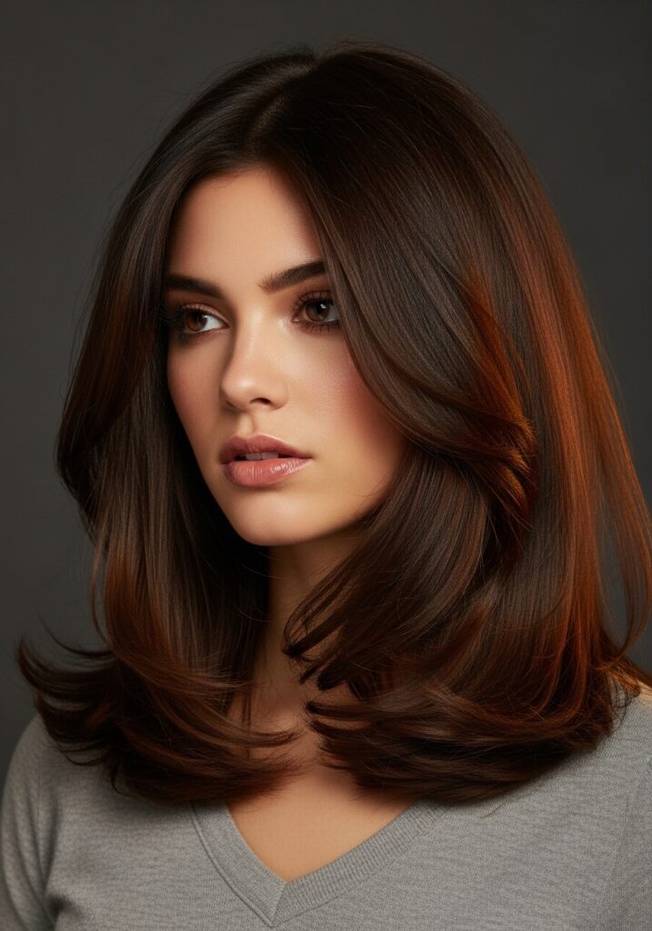 Dimensional dark brown with warm copper and amber undertones creates the most specifically beautiful version of dark brown hair available — a color that appears simply as a rich, dark warm brown in neutral light but reveals warm copper and amber depth in warm or directional light, creating a hair color with genuine visual dynamism that is most beautiful in the specific light conditions where it is most often experienced: warm afternoon sun, golden-hour photography, and warm indoor lamp light. The warm undertones transform the dark brown from beautiful to genuinely extraordinary.