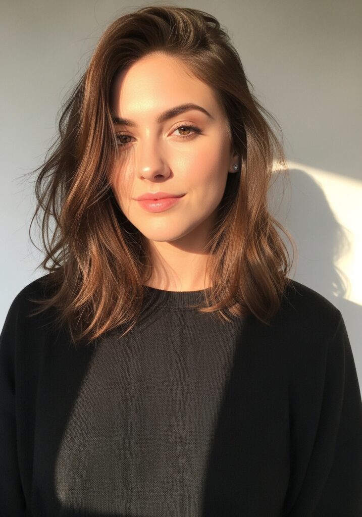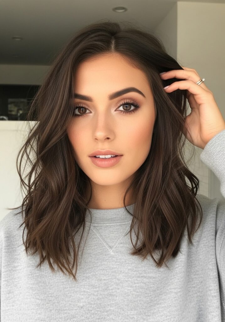 The specific warmth of the brown tone should be chosen with the lob’s specific styling approach in mind — warm brown tones appear richest and most luminous in natural wave texture that creates multiple surface angles catching the warm color at different values simultaneously. A cool or neutral brown in natural texture appears flatter and less dimensionally interesting than the same cut in warm brown because warm tones respond more dramatically to the light variation that natural texture creates. Style with a lightweight wave-enhancing cream applied to damp hair and air dry for the most authentic natural texture result.