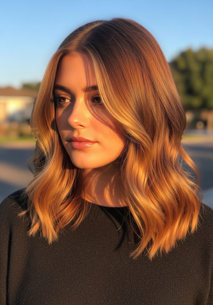 The seamlessness of the gradient is the technical achievement that determines whether this color reads as genuinely beautiful or simply as grown-out highlights — the transition between each stage of the gradient should be completely gradual with no visible demarcation point between any of the tonal stages. A warm toning treatment applied over the entire gradient after the lightening work creates a unified warmth throughout all stages of the color journey, making the gradient appear as one continuous warm color that simply becomes progressively lighter from root to end in the most natural and most beautiful possible expression.