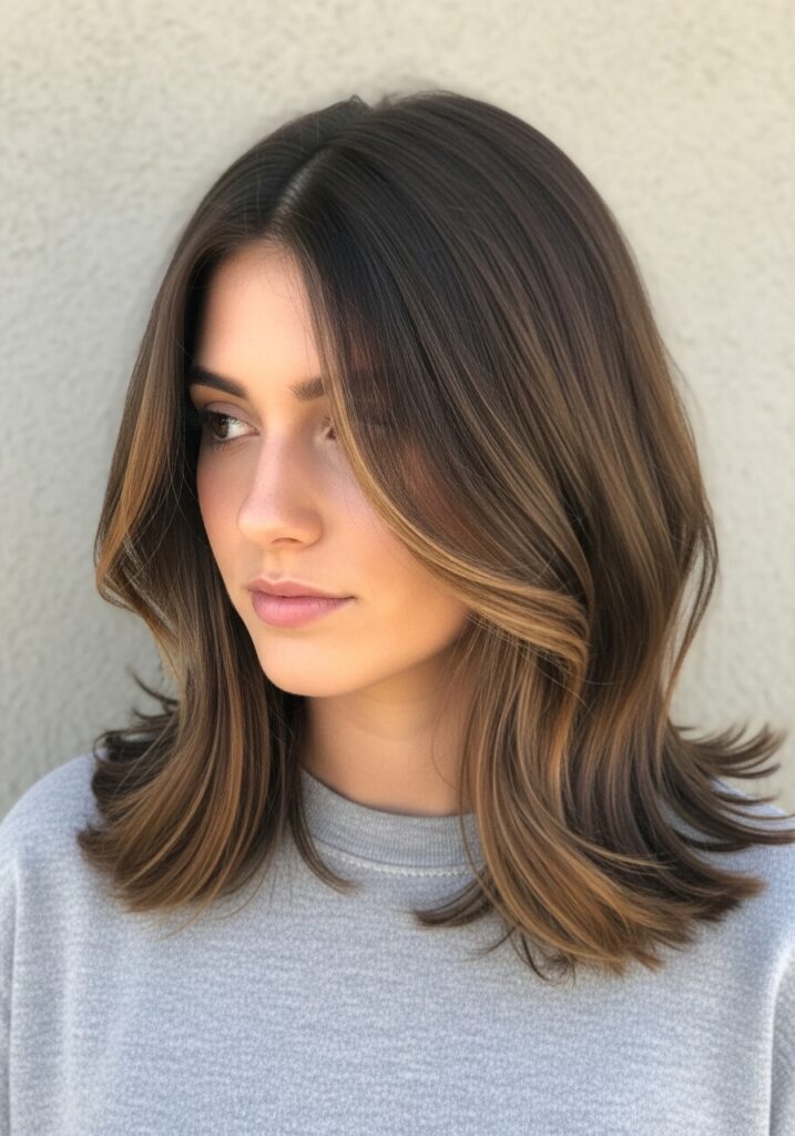 Soft brunette balayage is the brown hair glow up technique that most completely and most convincingly creates the appearance of hair that has been naturally sun-kissed over years of warm-weather outdoor living — because the hand-painted application technique follows exactly the logic of natural sunlight, placing the lightest tones in the sections that would receive the most sun exposure while leaving the protected sections at their natural depth. The result reads as completely organic, as though the sun itself made these specific, beautifully placed decisions about where to lighten.