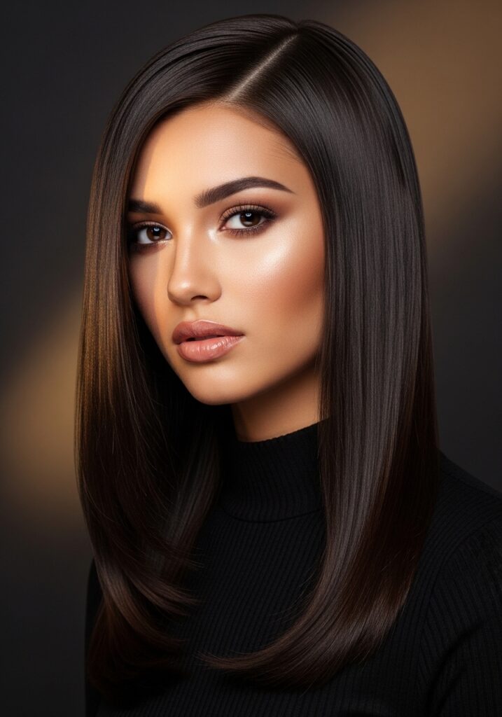 The dimensional quality of rich chocolate brown is created through a combination of warm chocolate base color and strategically placed deeper lowlights in the same warm brown family — the slightly darker sections create genuine shadow within the chocolate base that gives the overall color its perception of real depth. A warm chocolate gloss applied over the completed dimensional result unifies all the tones under one rich, luminous surface finish. Maintain with a moisturizing sulfate-free shampoo and a warm-toned deep conditioning treatment weekly to keep the chocolate’s characteristic warmth and richness at its most beautifully expressive.