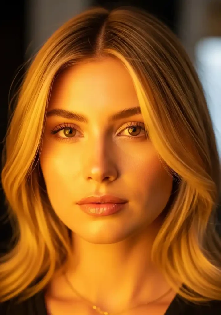 Butter blonde hair formulated specifically to maximize the harmony between the warm, creamy golden tones and a warm, golden, or olive complexion creates a color result of such natural beauty and such personal rightness that the hair and skin appear to have been specifically designed in relationship to each other rather than existing as independent elements of overall appearance. The specific warmth of butter blonde, which carries golden and creamy undertones rather than cool or neutral ones, creates an answering resonance with the warm undertones of the complexion that makes both the hair and the skin appear more vibrant, more naturally radiant, and more beautifully harmonious.