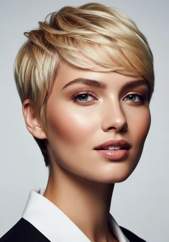 The specific warmth of butter blonde on a pixie cut creates a particularly beautiful relationship with the face, as the short length places the warm, creamy golden tones in immediate proximity to the features at every point around the face simultaneously, creating a continuous warm golden frame that illuminates the skin with the same light-reflective warmth from every angle rather than the more directional illumination of longer hair where the warm tones appear at the sides and front. This continuous warming effect makes butter blonde one of the most consistently flattering color choices for a pixie cut, enhancing rather than competing with every facial feature it surrounds. Monthly gloss appointments maintain the maximum creaminess.