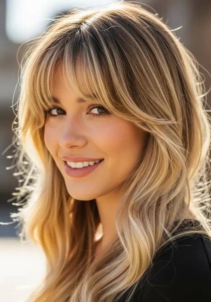 The specific synergy between butter blonde balayage and curtain bangs is that both elements serve the face-framing function in complementary ways, with the balayage concentrating its warmest tones at the face-framing sections where they create the most immediate and most luminous brightening effect, and the curtain bangs adding a soft structural framing of the forehead and upper face that the color alone cannot provide. Together, they create a complete, warm, dimensional frame around the entire face that works through both color and form simultaneously, producing a result of such consistent and such universal flattery that this combination has become one of the most reliably saved and most enthusiastically recommended on the entire Pinterest hair platform.