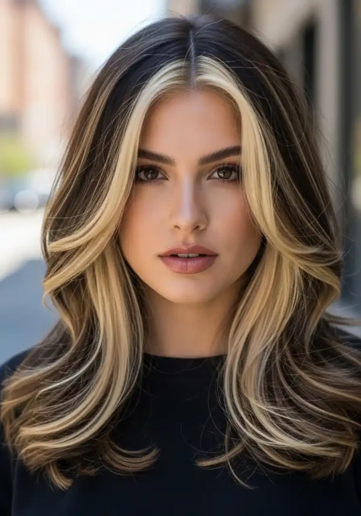 Soft butter blonde highlights on a dark brunette base create a face-framing and hair-illuminating color contrast of genuine visual impact, using the significant depth difference between the dark brunette base and the warm, creamy butter blonde highlights to create a result that appears dramatically more luminous and more warmly beautiful than the single-tone dark base did independently. The specific butter warmth of the highlight tone creates a face-brightening quality that cool or neutral blonde highlights on the same dark base simply cannot replicate, as the creamy golden warmth of the butter tones interacts with the warm ambient light around the face to create a genuinely glowing illumination.