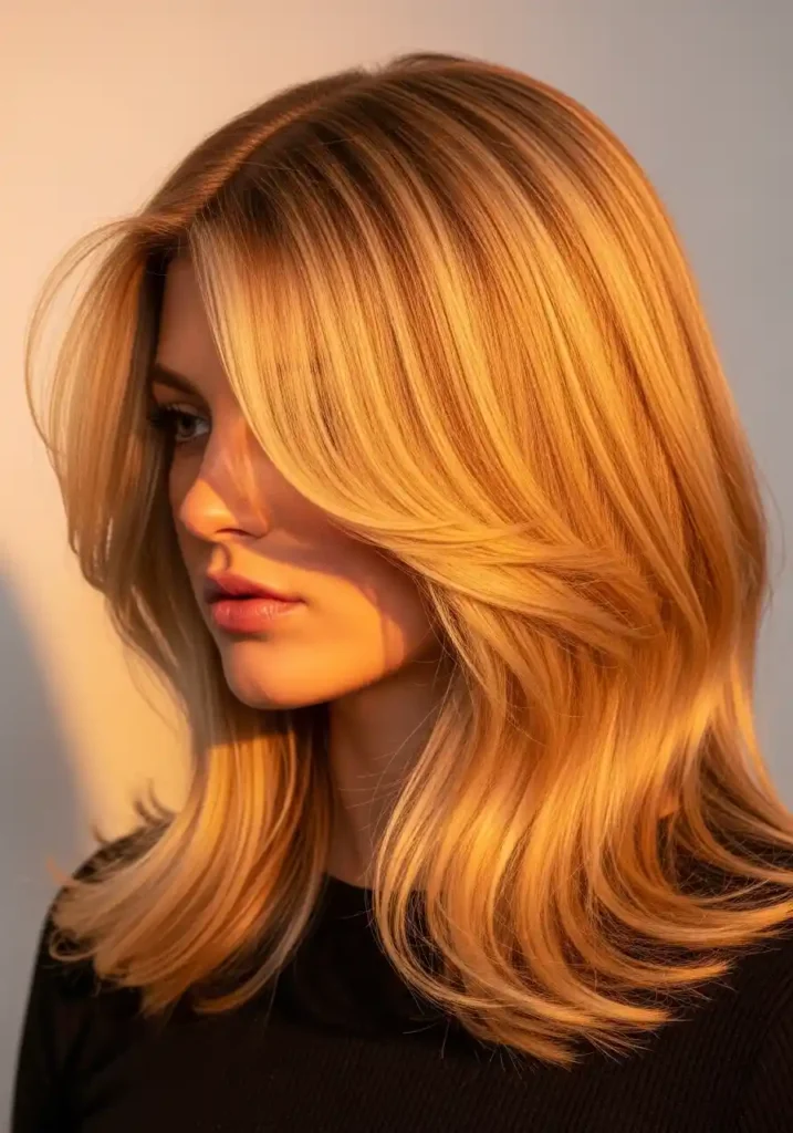 Honey butter blonde is particularly spectacular in warm, outdoor natural light settings where the amber quality of the honey tones and the creamy luminosity of the butter tones interact with sunlight to create a glowing, almost liquid warmth throughout the hair that photographs with extraordinary richness and appears almost too beautiful to be real. Women with warm or golden complexions find that honey butter blonde creates a seamless, gorgeously harmonious relationship between their hair and skin that appears completely natural and completely perfect, as though the specific warm amber-cream of the honey butter tone was formulated with their exact complexion in mind. A warm honey-toned gloss refreshed every six to eight weeks maintains the rich amber quality of this gorgeous warm blonde variation.