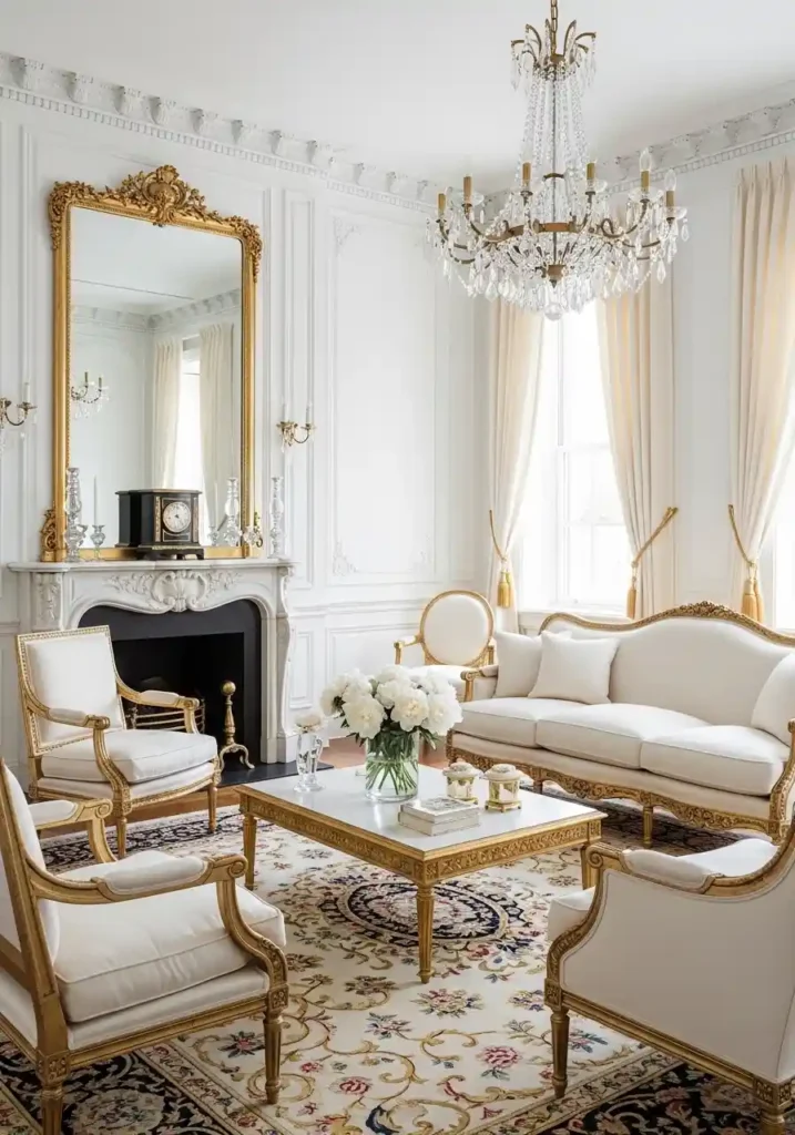 A classical white and gold living room — drawing from the most magnificent traditions of European formal interior design with its gilded furniture frames, crystal chandeliers, silk upholstery, and the extraordinary decorative plasterwork of the finest eighteenth-century reception rooms — creates the single most timelessly elegant and the most completely formally beautiful gathering space available in any residential setting, because white and gold in a classical living room context has been creating the most completely admired and the most genuinely spectacular domestic interiors for over three centuries without a single moment of genuine aesthetic uncertainty or design inadequacy!