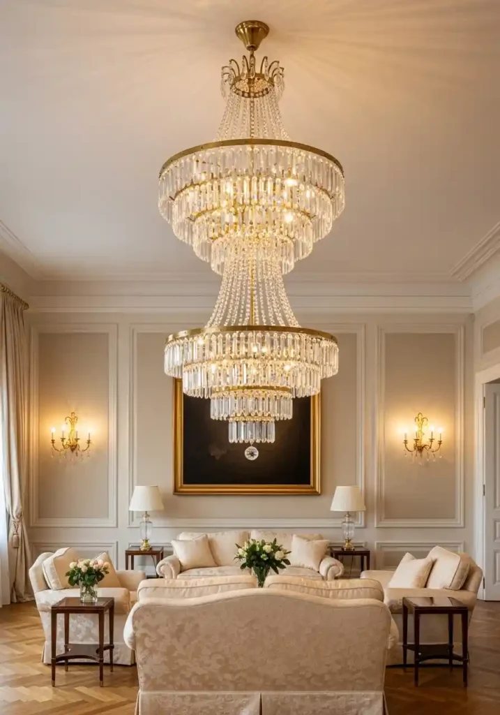 11. The Crystal Chandelier Living Room: When Light Itself Becomes the Greatest Timeless Element