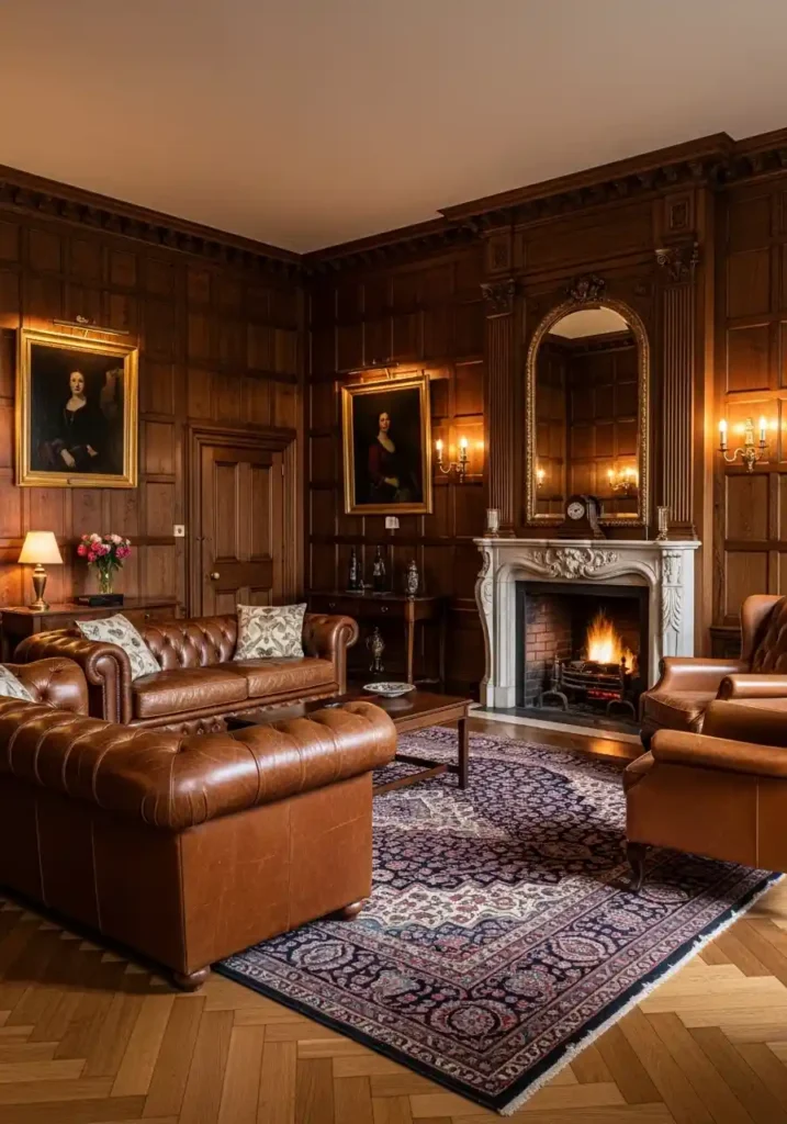 3. The Dark Wood Paneled Living Room: Masculine Grandeur of Absolute Classical Authority