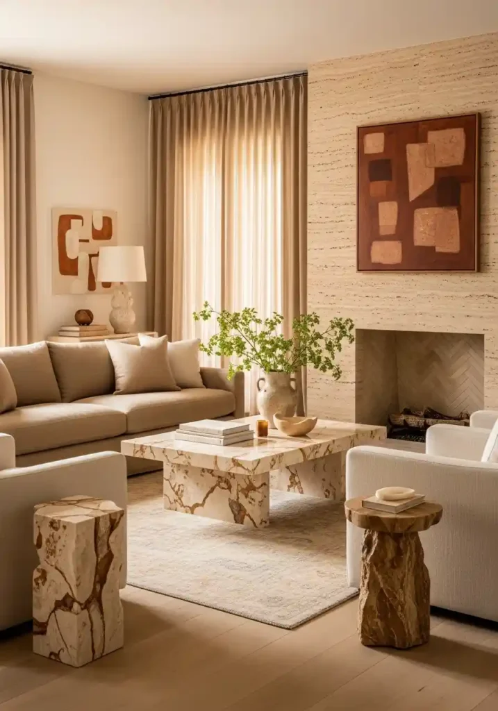 19. The Linen and Natural Stone Living Room: Quiet Organic Classicism for Sophisticated Tastes