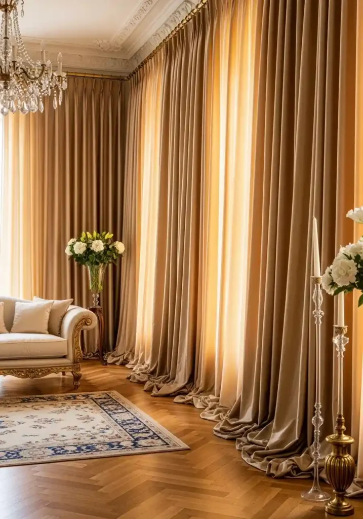 Floor-to-ceiling silk curtains in genuinely generous quantities that pool beautifully on the parquet floor are the single most architecturally magnificent and the most timelessly classically beautiful window treatment available in any classy living room — because genuine silk curtains of the highest quality bring a combination of luminous light quality, extraordinary beautiful drape and movement, and genuine material luxury to the living room that no other fabric at any price point can replicate with the same extraordinary visual presence, the same quality of warm light filtration, and the same genuinely magnificent sense of formal domestic ceremony!