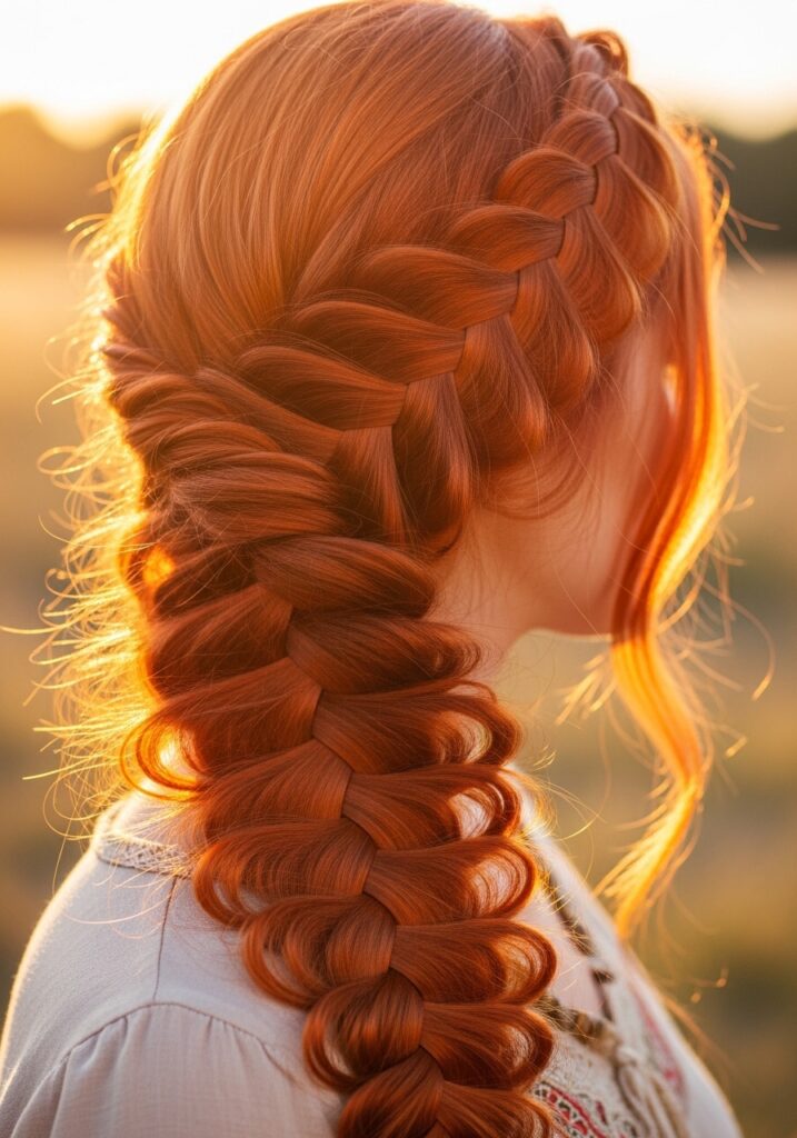 The specific quality of copper red in a braided context creates a particularly dramatic and beautiful effect in warm outdoor light, where the metallic quality of the copper tones seems to resonate with and be amplified by the warm quality of natural golden light in a way that creates hair of almost supernatural, incandescent beauty. Braids in copper red hair consistently produce some of the most stunning and most widely shared hair photography because the combination of the braid’s intricate structural pattern and the copper’s blazing, metallic warmth creates an image of such complete and genuinely extraordinary beauty that it appears almost too beautiful to be completely real. The copper braid is simply magnificent.