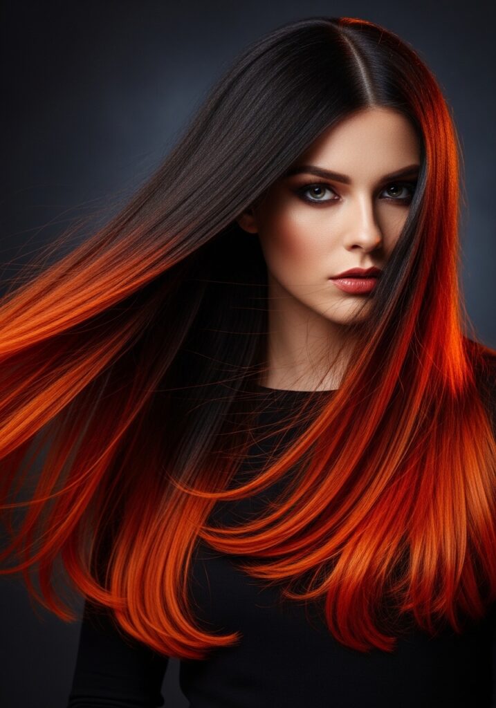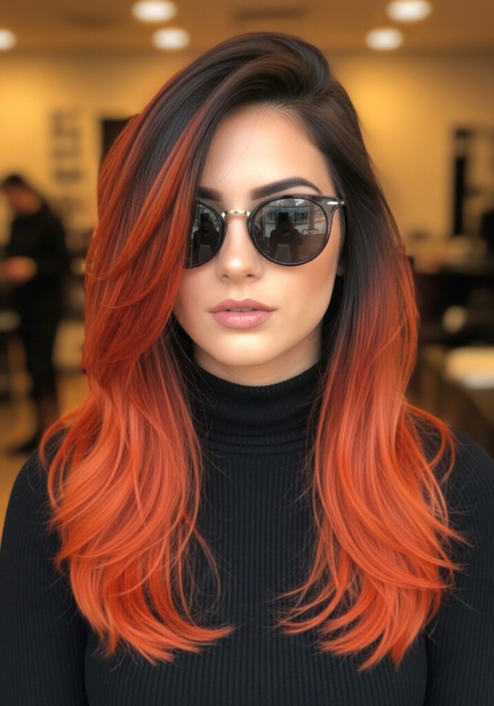 Copper red ombre creates one of the most dramatically fiery and genuinely breathtaking hair color effects imaginable, taking the hair on a deliberate journey from the deepest, most grounding darkness at the roots through progressively warmer and more metallic tones toward the ends where the full, blazing brilliance of true copper red finally emerges at the tips in a concentration of such warm, metallic intensity that the ends of the hair appear almost incandescent when caught in natural light. The specific warmth and metallic quality of copper red makes it a particularly spectacular ombre destination because the color’s inherent radiance creates ends that appear to glow with their own warm light rather than simply being a lighter, brighter version of the root color.