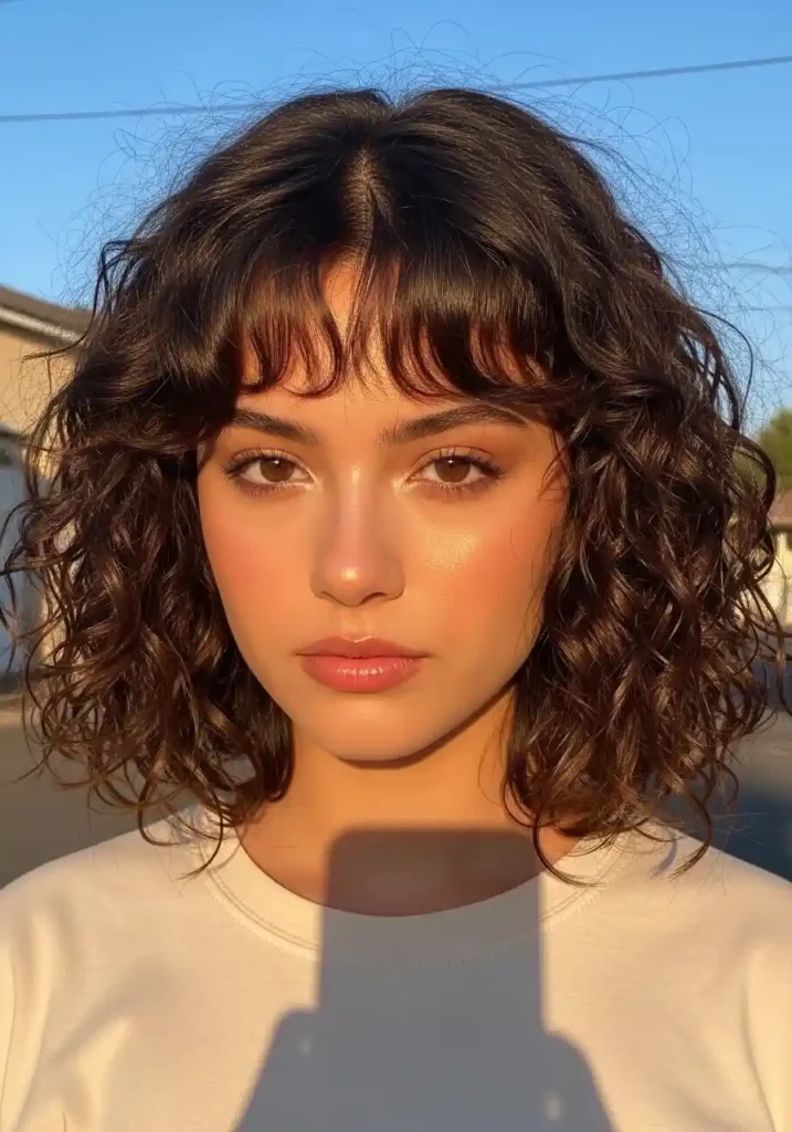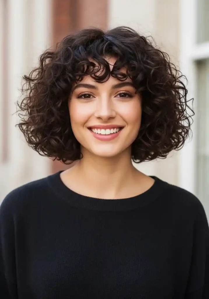 4. Curly Bob with Curtain Bangs