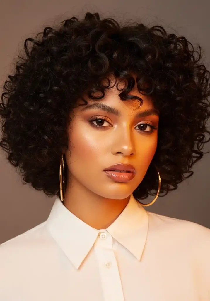 A voluminous curly bob on 4B to 4C afro-textured hair creates the most abundantly full and most sculpturally impressive version of the curly bob silhouette — the afro texture’s characteristic shrinkage, density, and three-dimensional coil formation creates a bob shape of extraordinary rounded fullness that appears almost architectural in its precise, dome-like volume. The afro-textured curly bob is a genuinely powerful and genuinely beautiful expression of natural hair at its most abundant and most structurally defined.