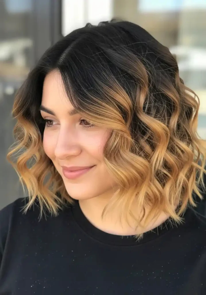 16. Curly Bob with Natural Ombre for Dimensional Color