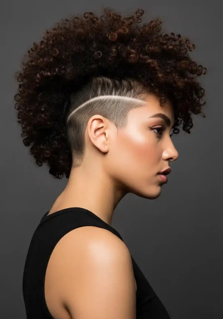 The specific placement of the undercut within the curly bob can range from a geometric shape shaved into the nape to a full undercut that removes the nape section entirely, with the curly bob length falling over it from above. The undercut should be maintained with a clipper trim every two to three weeks to preserve the clean, sharp edge that creates the maximum contrast with the curly bob. In everyday wear, the undercut is completely concealed beneath the curly bob’s natural fall. Pushed to one side or gathered up, it reveals its bold secret.