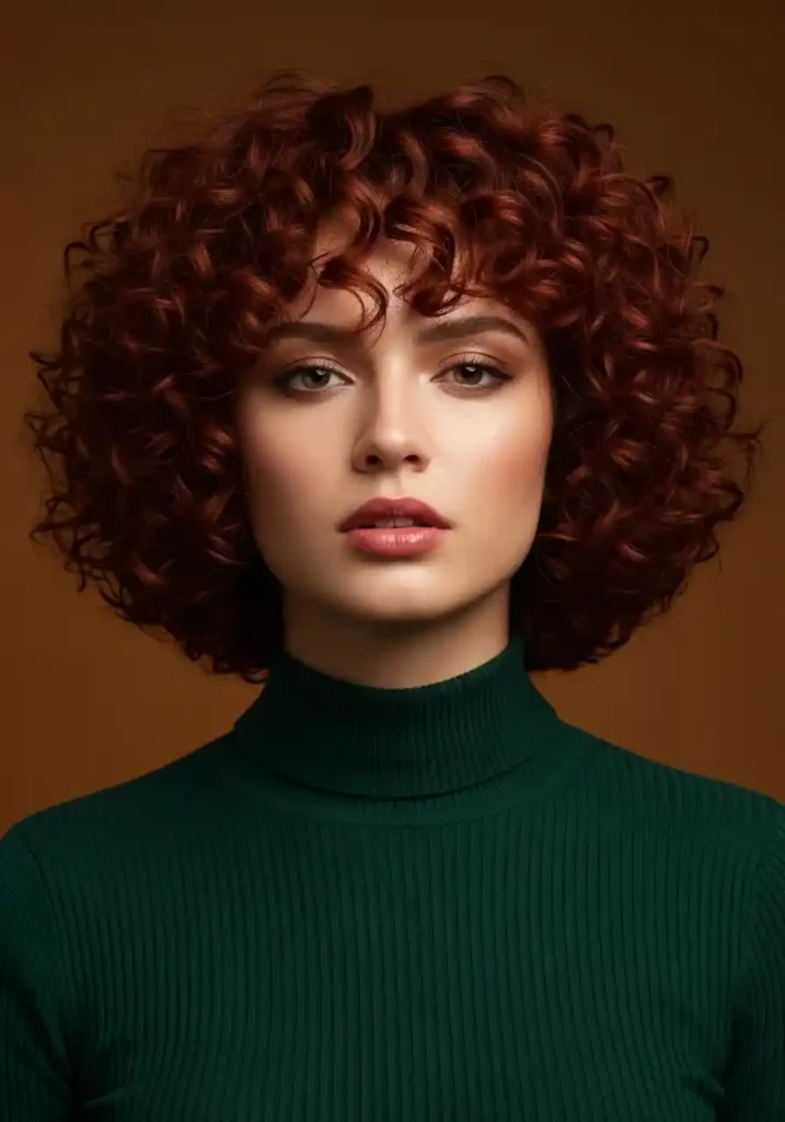 A curly bob on natural auburn or red curly hair creates one of the most specifically warm and most genuinely vivid color-and-texture combinations available in the curly bob family — the warm copper and red tones within natural red hair create an extraordinary shimmer and warmth within each individual spiral that makes the curly bob appear genuinely lit from within with a specific fiery warmth. In warm natural light, the red and copper tones in the curls ignite with a brilliance that is absolutely unique to natural red curly hair.