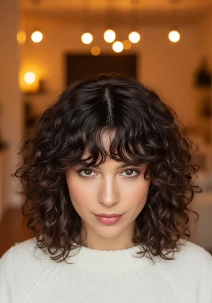 The addition of curtain bangs to the curly shag adds a face-framing dimension of particular beauty specific to curly hair, because the natural curl pattern of the bangs creates a uniquely organic framing effect where the curls spiral away from the center part and frame the face in their own individual coiling shapes rather than lying flat as curtain bangs do in straight hair. This curly curtain bang creates a face-framing effect of genuine three-dimensional beauty that is completely unique to curly hair and deeply flattering for virtually every face shape and complexion. Women who choose the curly shag consistently describe it as the first haircut that has ever made their curls look genuinely intentional, beautiful, and completely at their most expressive and defined best.