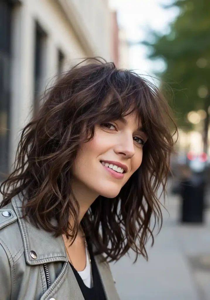 Shaggy, heavily textured layers on naturally curly or wavy hair create one of the most authentically cool and genuinely expressive haircut results available at medium length, using aggressive layering and deliberate texturizing throughout the cut to create a style that celebrates the natural disorder and organic expressiveness of curly hair rather than attempting to manage or contain its wildness into any kind of conventional, tamed shape. The shaggy layers allow each curl and wave to express its own individual character fully and freely, creating a style that appears different from every angle and in every light condition because the curls are given maximum freedom to spiral and wave in their own completely natural directions. This deliberate freedom is the entire beauty.