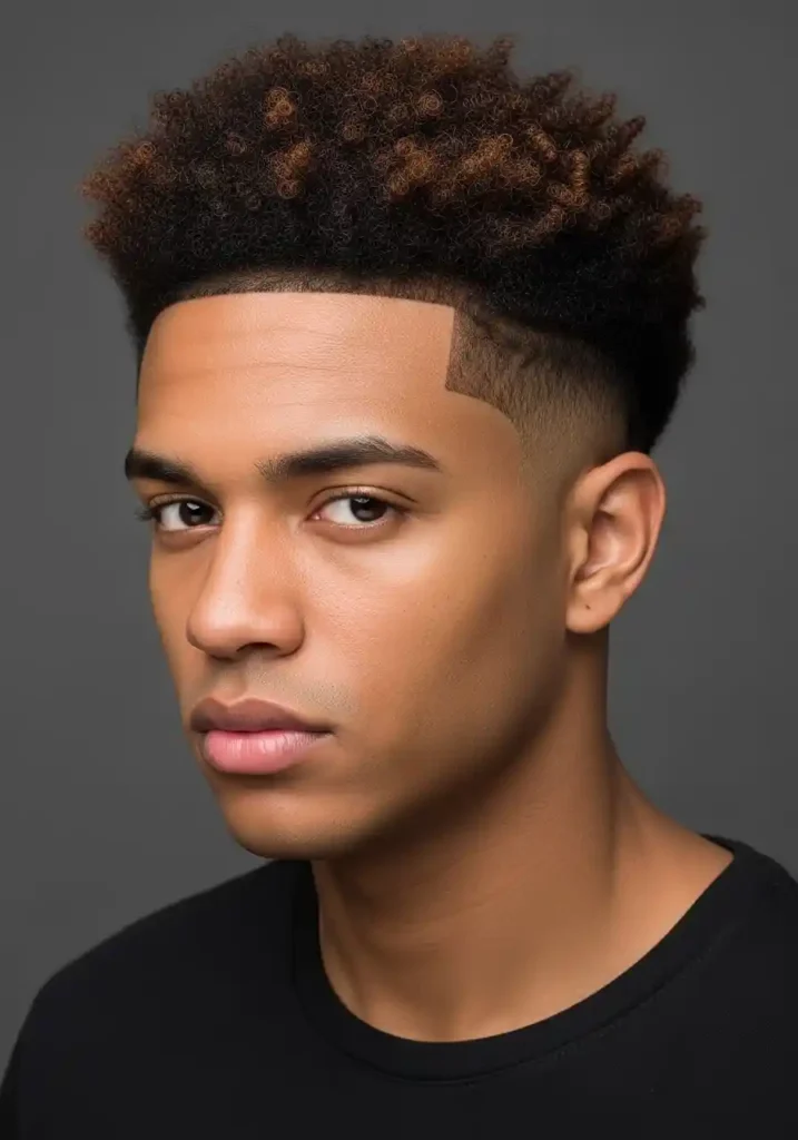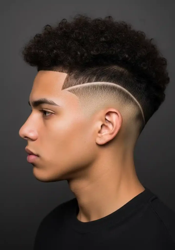 A burst fade — where the fade radiates in a curved arc around the ear rather than following a straight horizontal line — provides the most contemporarily edgy and most specifically original architectural base for natural curls on top. The burst fade’s distinctive curved shape creates a specifically modern and specifically artistic structural contrast with the natural curls above, creating a hairstyle whose architectural innovation in the fade zone amplifies the natural curl expression’s character and beauty by surrounding it with an equally bold and equally considered structural element.
