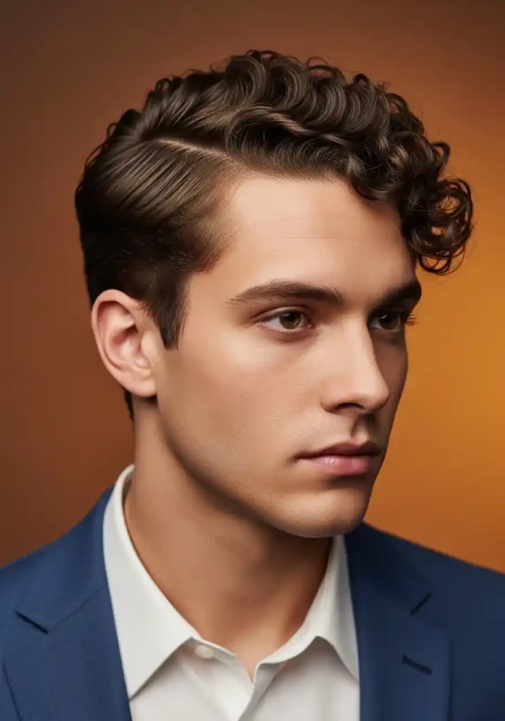 The natural curl pompadour works most beautifully when the curls’ own natural lift tendency is encouraged rather than suppressed — direct the front sections upward and forward while damp and drying, using the curls’ natural spring to maintain the lifted position rather than relying on stiff product to force the shape. A medium-hold curl cream or light pomade applied to damp hair and directed in the pompadour direction creates the most natural and most specifically charming vintage-modern curl pompadour result.