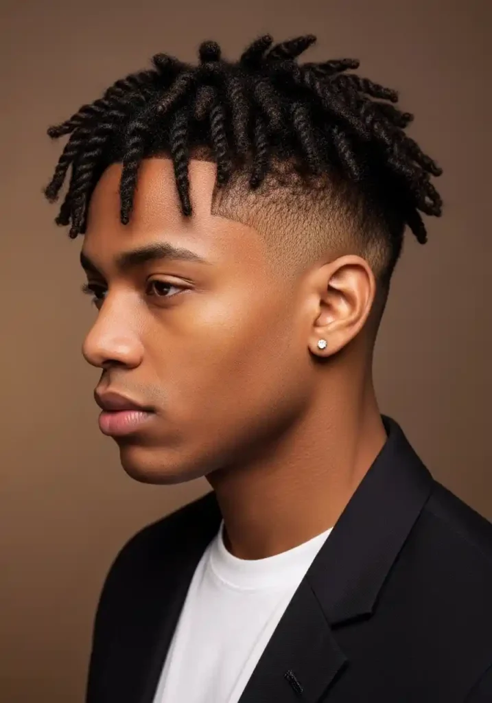 Protective twists — two-strand twists or flat twists — combined with a clean fade create the most deliberately styled and most specifically designed natural men’s hairstyle available. The protective twist style creates a specifically intended pattern and a specifically defined textural composition that communicates complete hairstyle intention and complete natural hair mastery, while the clean fade provides the modern structural precision that frames the protective style most cleanly and most specifically beautifully.