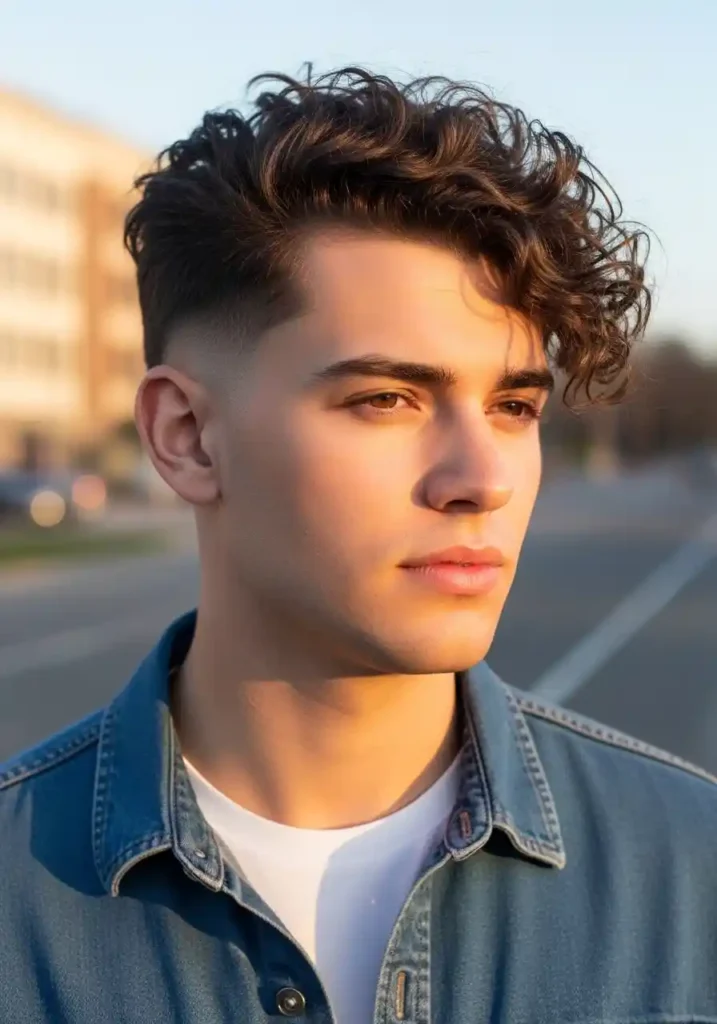 A natural curl fade — allowing the curls to express their full natural definition and personality at the top while a clean skin fade creates architectural precision at the sides — creates the most cleanly modern and most specifically attractive curly men’s hairstyle available. The fade’s architectural cleanliness specifically amplifies the curls’ natural character by providing a precisely groomed structural framework within which the organic, natural curl expression appears most beautifully defined rather than simply abundant or uncontrolled.
