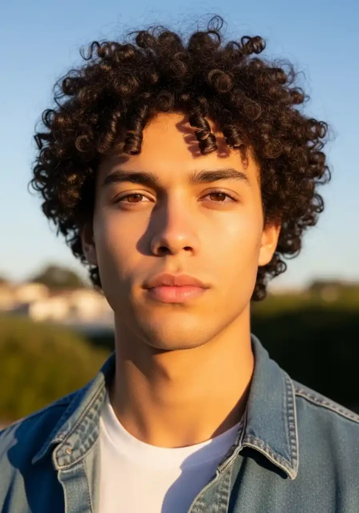 A natural curly pompadour — where the natural curl’s own spring and bounce is harnessed to create a lifted, forward-swept pompadour formation without forcing the curls into an unnatural smooth shape — creates one of the most vintage-modern and most characterfully charming of all curly men’s styling expressions. The natural curl’s organic character within the pompadour’s classic directional movement creates a hairstyle that references masculine grooming tradition while remaining completely and specifically natural in its material quality.