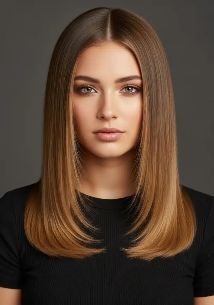 The natural straight styling approach — using a blow dryer and paddle brush rather than a flat iron for the final smoothing — creates a finish that is smooth and luminous without the absolute flatness of flat iron styling, preserving a slight natural roundness in the hair’s movement that adds a living, graceful quality to the straight style. This approach is also significantly gentler on the hair’s health and on the integrity of the soft dark blonde color’s warmth and depth, since repeated flat iron use at high temperatures gradually degrades both the hair’s natural moisture balance and the color’s luminosity. Finish with a small amount of argan oil for glass-like reflectivity.