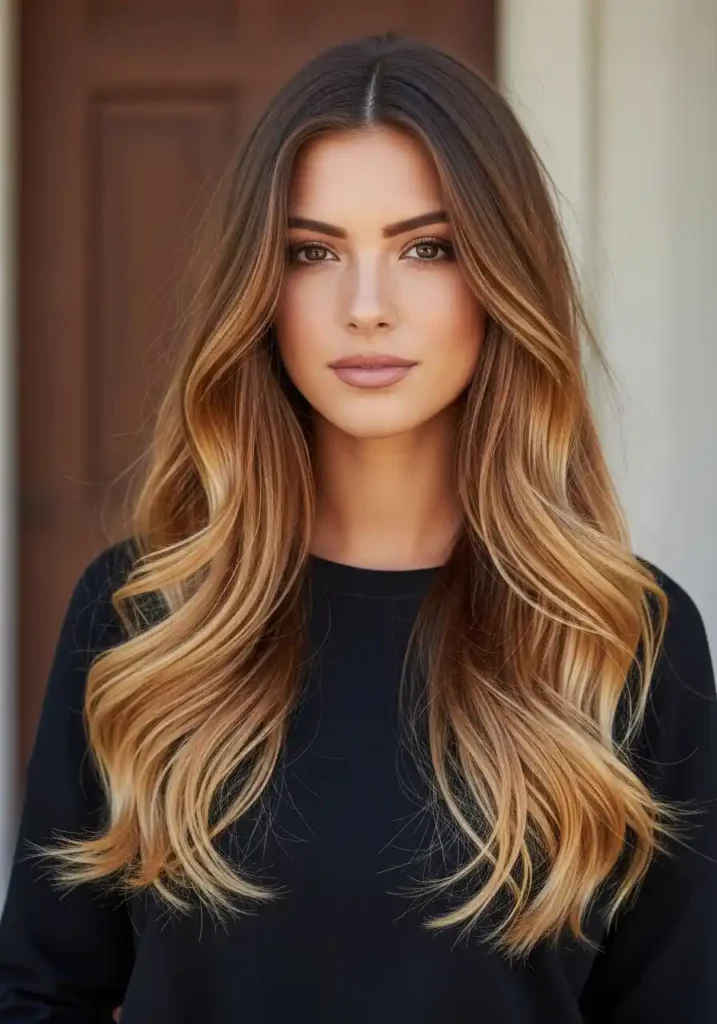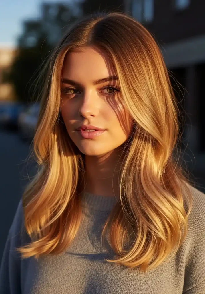 Balayage is the ideal technique for dirty blonde hair because it works with the natural variation already present in the color rather than imposing a uniform, artificial pattern over it. The hand-painted caramel tones are placed in a way that mimics natural sun and shadow — lighter on the top sections that sun would naturally reach first, deeper in the underlayers where shadow naturally lives, and with the most variation and blend in the mid-lengths where natural color gradients are most complex. The result is a dirty blonde that appears to have been kissed by warm autumn light — rich, warm, and possessed of a natural depth that makes it appear genuinely effortless.