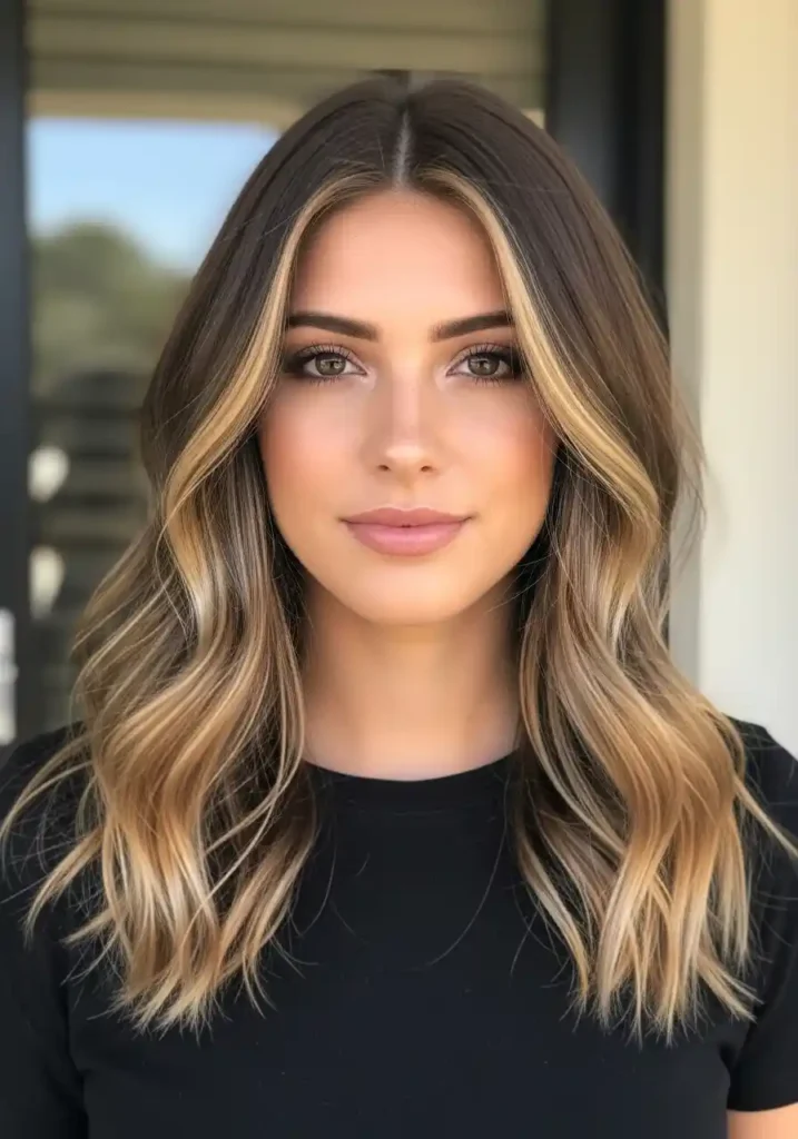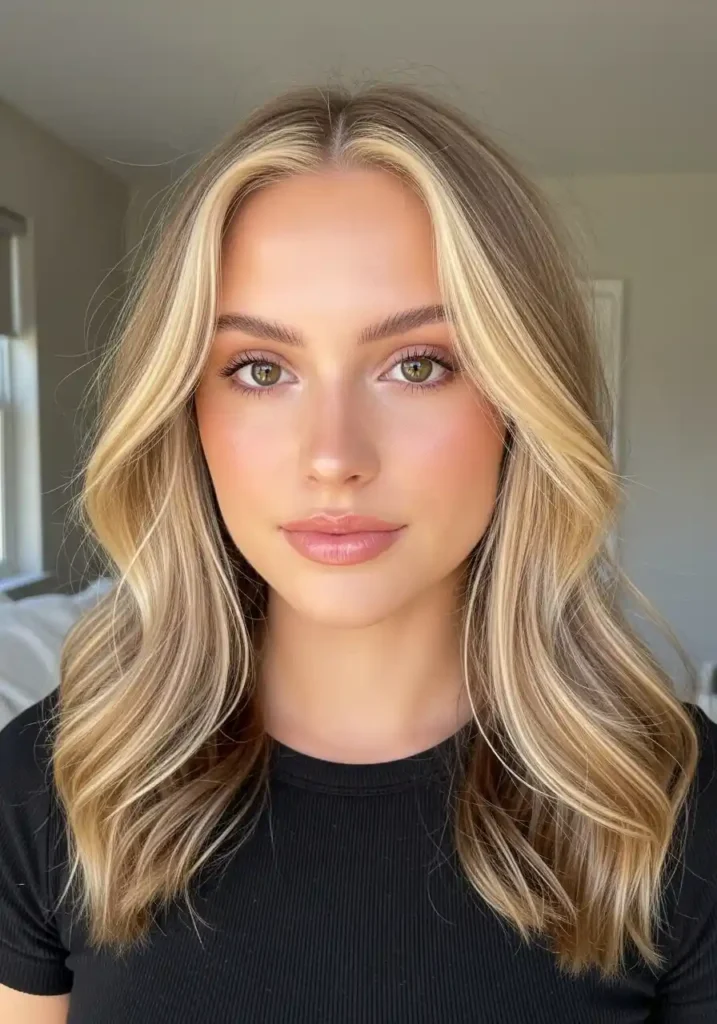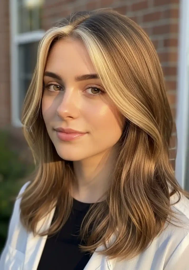 The distribution of dirty blonde highlights within a brunette base determines both the style’s overall impact and its maintenance requirements. Heavily distributed highlights with small, numerous sections create a blended, overall warmth that is low-maintenance because the grow-out is virtually invisible. More concentrated highlights placed primarily around the face and on the top surface sections create a more visible brightening effect at the most photographed and most noticed areas while keeping the majority of the hair at its natural darker tone. Either approach is beautiful — the choice depends on how significant a color change you want and how often you want to return to the salon.