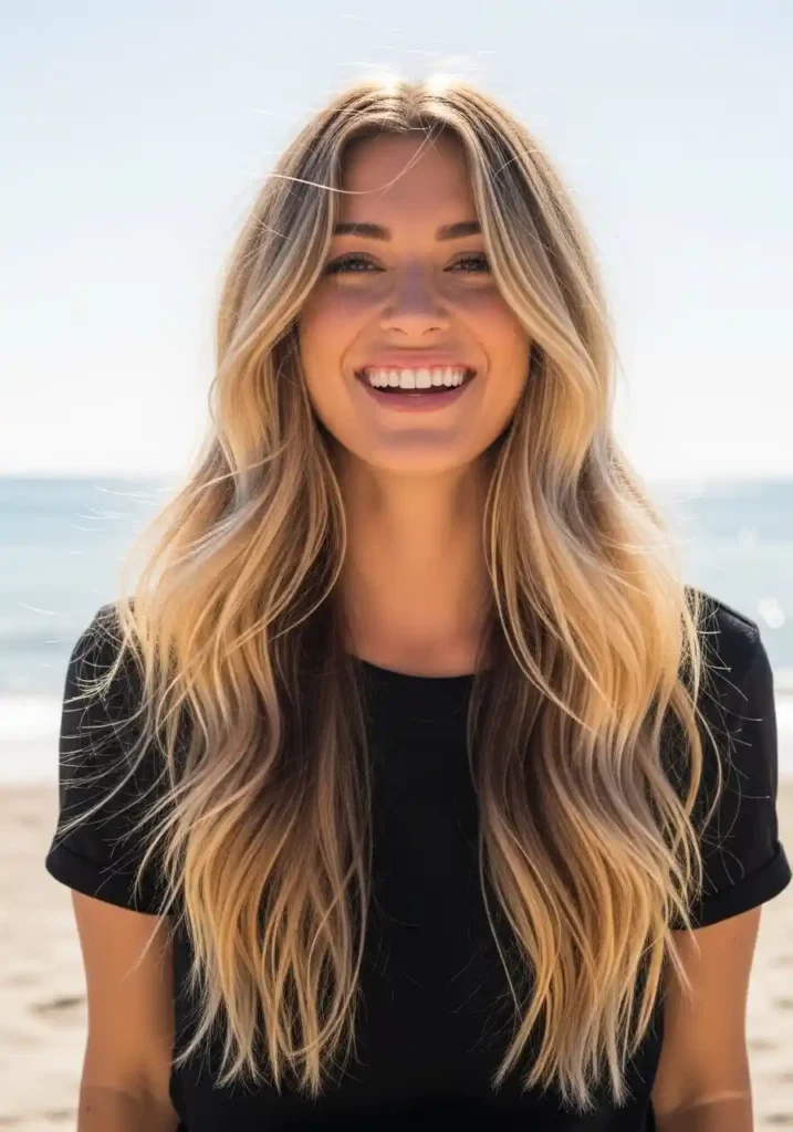 Long dirty blonde hair in beach waves is the hair equivalent of a perfect summer afternoon — warm, luminous, effortlessly beautiful, and possessed of a quality of ease and naturalness that more elaborate styling can never quite replicate regardless of how skilled its execution. The length of long hair gives the beach waves their most impressive expression because the waves have room to develop fully and to create a sweeping, generous movement that short and medium-length waves cannot achieve. In dirty blonde tones, this movement becomes a light show — each wave crest catching warm light while each wave trough creates shadow and depth.