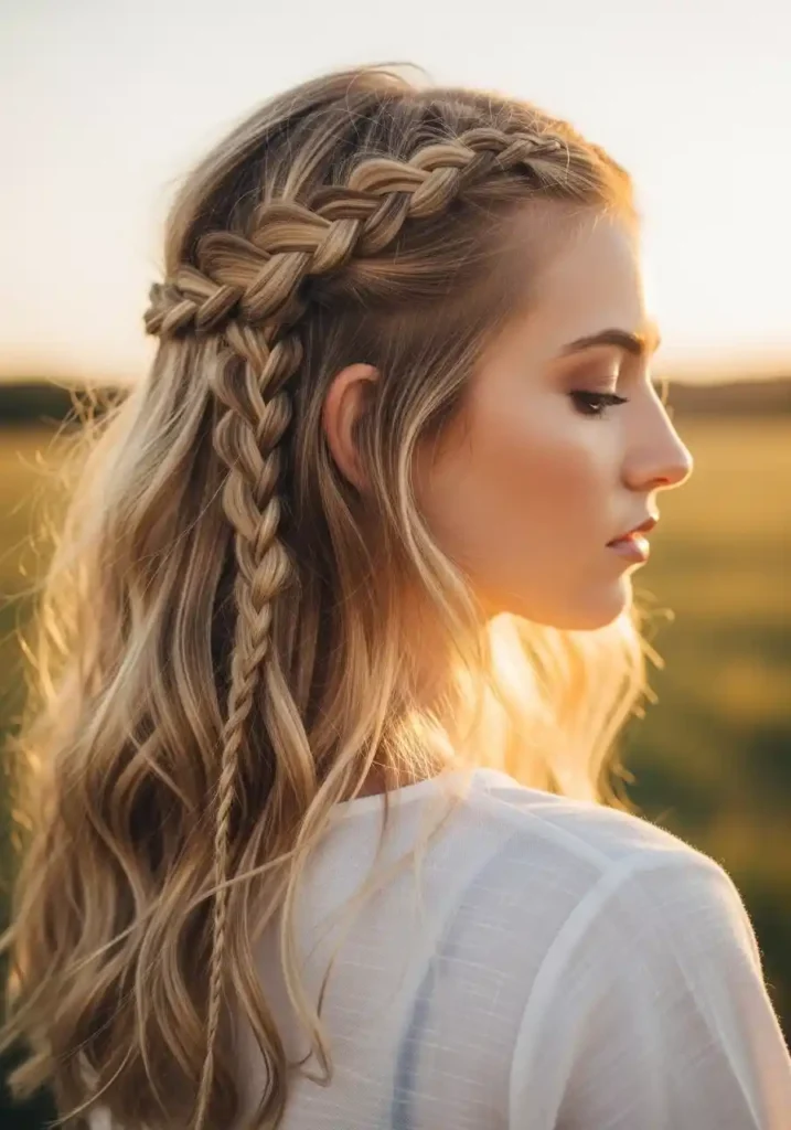 Dirty blonde hair with braided details woven into loose waves is the hairstyle that Pinterest’s boho and romantic hair communities return to again and again because it delivers exactly what both communities value most — effortless beauty with visible personal attention and care. The braided details can be as simple as two thin face-framing braids pulled back from the temples and secured together at the back, or as elaborate as several small braids distributed throughout the loose waves in a seemingly random but carefully composed arrangement. Either interpretation creates a hairstyle that looks genuinely hand-crafted and personally expressive.