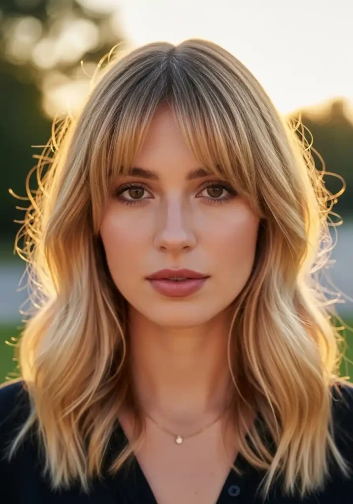 Dirty blonde curtain bangs are among the most naturally beautiful fringe choices available because the dirty blonde color — with its built-in depth and natural variation — gives the soft curtain bang section a dimensional quality that makes the fringe look like it was colored and styled by the sun itself. The slight variation between the darker roots and lighter ends of the dirty blonde color creates a natural gradient within the curtain bang section that is particularly beautiful and particularly visible in the fringe, where the short length displays the full range of the color’s variation in a concentrated, face-level vignette.