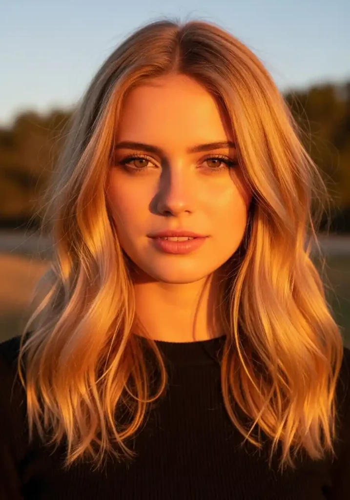 This color is particularly beautiful on skin tones with warm, neutral, or olive undertones — complexions that have their own inherent warmth are most beautifully complemented by the chestnut-toned dirty blonde’s reciprocal warmth, creating a complete picture of warmth and luminosity that feels entirely natural and harmonious. Achieve this tone by asking your colorist for a dirty blonde base with warm chestnut shadow roots and golden-auburn mid-length toning — the combination of the chestnut darkness at the roots and the golden warmth through the lengths creates the characteristic depth and complexity that distinguishes this version. Maintain with a warm auburn-toned gloss every eight weeks.