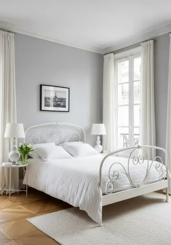 16. The Parisian Apartment Bedroom: Grey, White, and Genuine Continental Sophistication