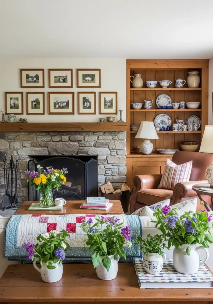 The most genuinely rustic and the most completely warm farmhouse living room of all is ultimately the one that tells the most specific, the most real, and the most completely personal story of the specific family who gathers within it every day — because the farmhouse aesthetic has always been fundamentally about genuine family life lived honestly and warmly, about inherited beautiful things treasured and displayed with real family pride, about homegrown flowers in mason jars and handmade quilts from beloved grandmothers and children’s ceramic art displayed alongside vintage family pottery with genuine celebratory love!