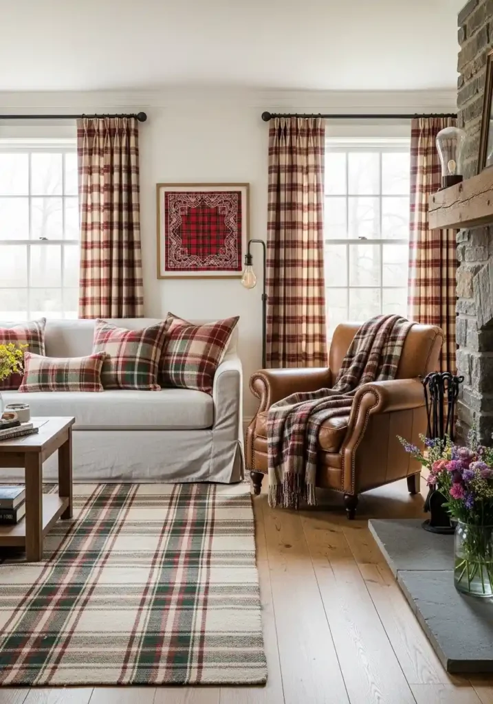 16. The Farmhouse Plaid Living Room: Pattern Heritage That Belongs in Every Farm Home