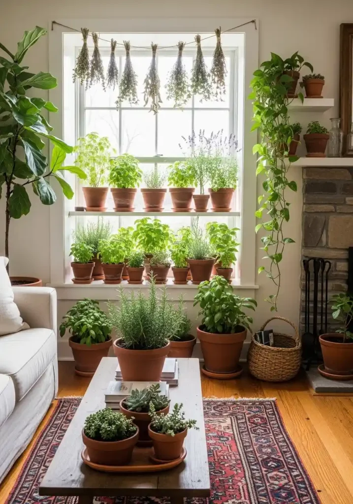 19. The Farmhouse Potted Herb and Plant Living Room: Living Botanicals as Pure Farmhouse Soul