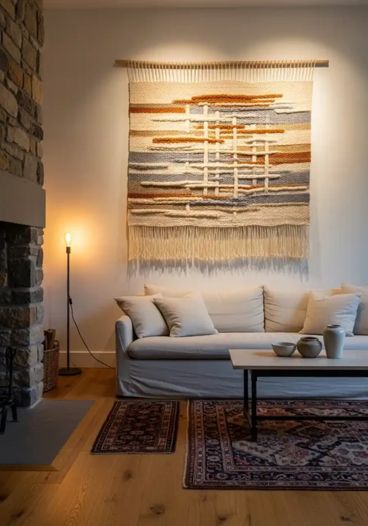 18. The Farmhouse Woven Textile Wall Art: Handcraft as the Most Personal Wall Statement